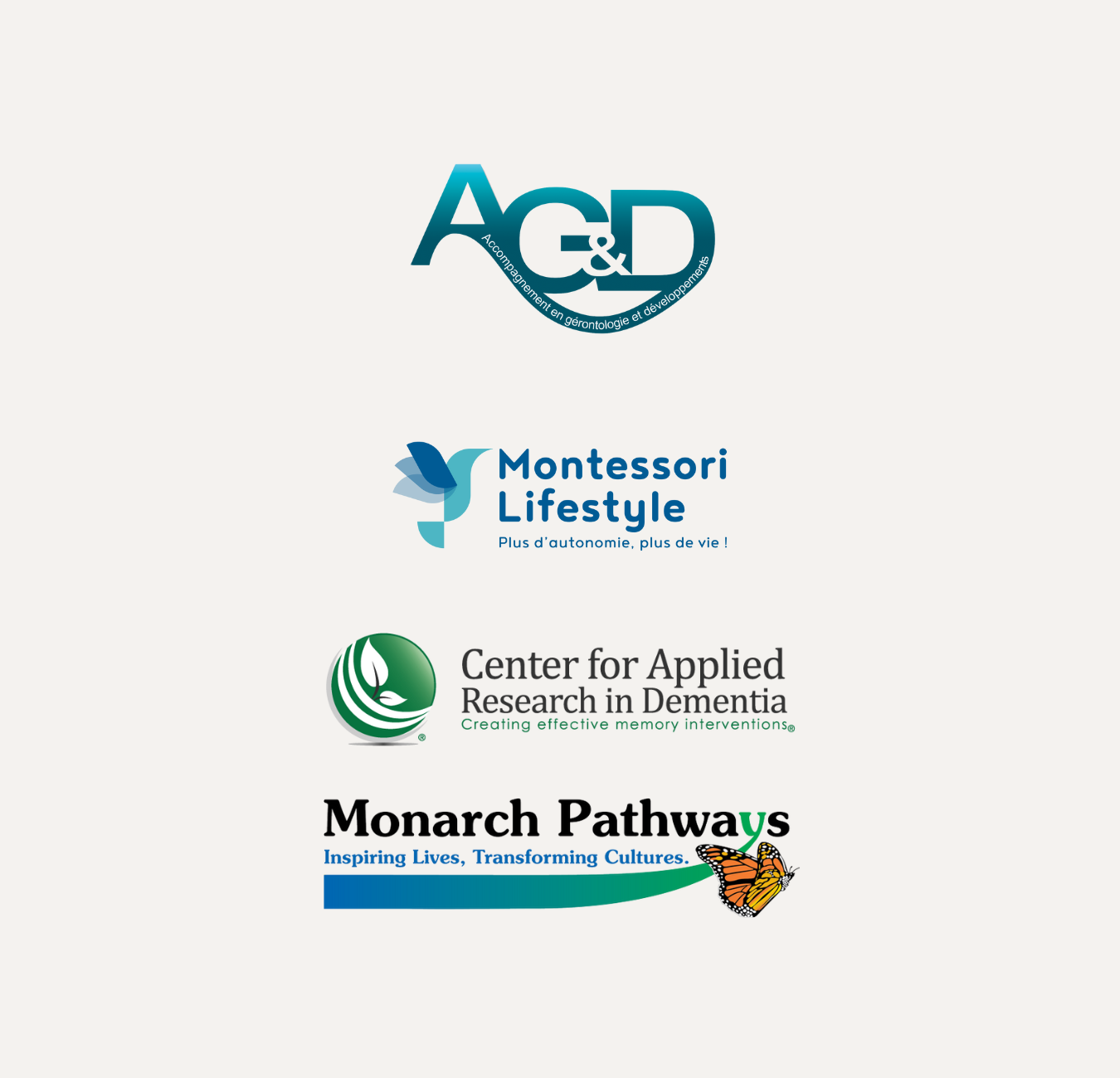 Temos como parceiros a AG&D/Montessori Lifestyle, organização francesa que detém os direitos exclusivos de difusão na Europa da metodologia Montessori for Aging and Dementia, desenvolvida pelo Dr. Cameron Camp.